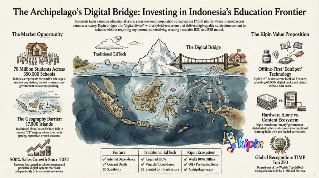 JAKARTA – As Indonesia accelerates its journey toward the “Golden Generation 2045,” the nation’s education sector has emerged as one of the most compelling frontiers for global investment. With a constitutional mandate to allocate 20% of the national budget to education, the Indonesian government has announced a staggering Rp757.8 trillion (approx. USD 48 billion) for the 2026 education budget, a 9.8% increase from the previous year. At the heart of this massive digital transformation is Kipin EdTech, a homegrown innovator that has solved the archipelagic nation’s most difficult challenge: delivering quality digital education without the need for the internet.